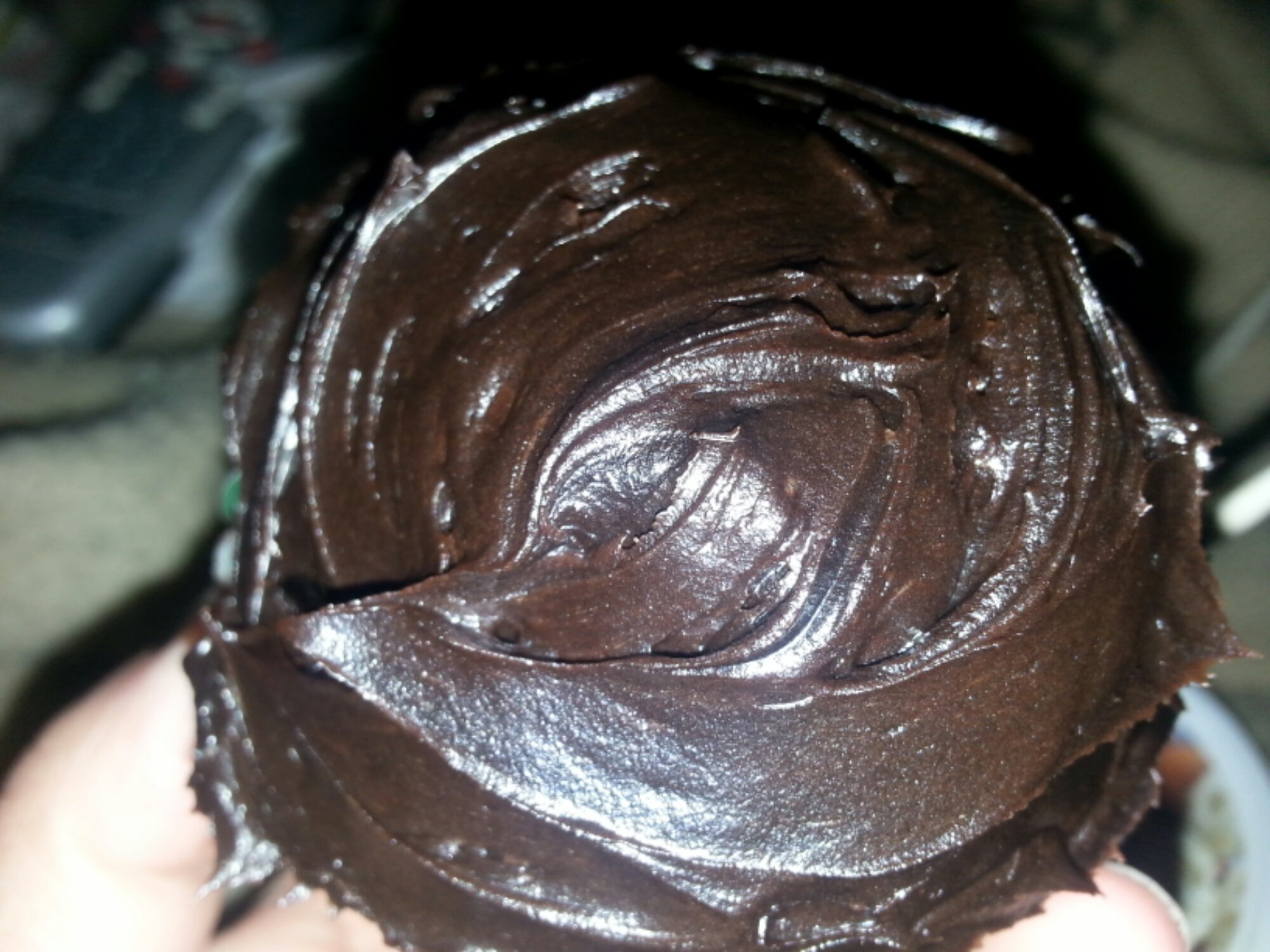 Dark Chocolate Chunk Chocolate and Walnut Muffins with Dark Chocolate Frosting.