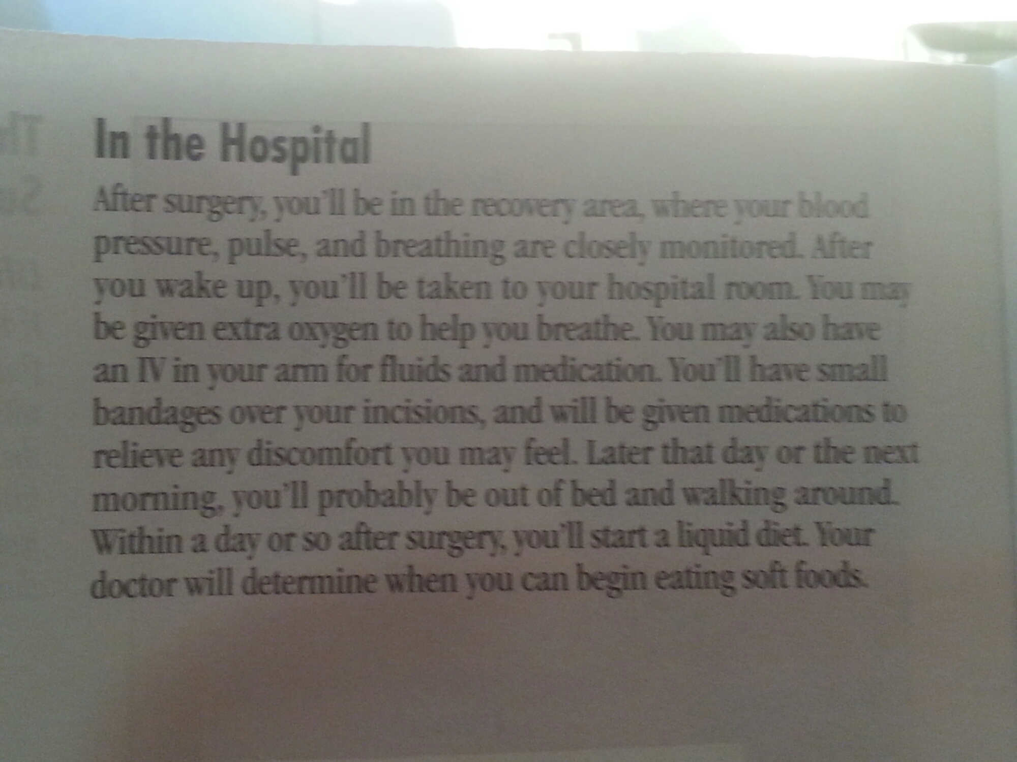 So after getting stuck 6xs with a 20 Guage needle (I currently have an IV in my arm and neck), cut 4 out of the 5 incisions done, and having my organs moved around. This is the outcome. At least I have low blood pressure (90/62), low cholesterol, great thyroid, low blood sugar, low body temp. And of course I’m on clear fluids.