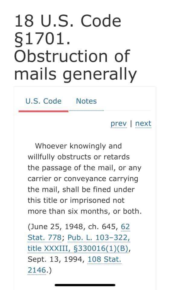 18 U.S. Code 1701. Obstruction of Mails Generally