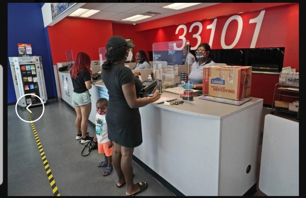 Protesters demonstrate during a “National Day of Action to Save the “Peoples” Post Office!” outside the Flagler Station post office, Tuesday, Aug. 25, 2020, in Miami. The pandemic has pushed the Postal Service into a central role in the 2020 elections, with tens of millions of people expected to vote by mail rather than in-person. At the same time, Trump has acknowledged he is withholding emergency aid from the service to make it harder to process mail-in ballots, as his election campaign legally challenges mail voting procedures in key states. (AP Photo/Wilfredo Lee)Postal workers attend customers at the Flagler Station post office, Tuesday, Aug. 25, 2020, in Miami. The pandemic has pushed the Postal Service into a central role in the 2020 elections, with tens of millions of people expected to vote by mail rather than in-person. At the same time, Trump has acknowledged he is withholding emergency aid from the service to make it harder to process mail-in ballots, as his election campaign legally challenges mail voting procedures in key states. (AP Photo/Wilfredo Lee)