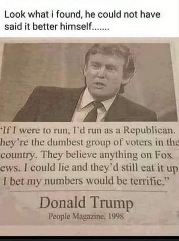 It just blows my mind how or why his cult like Republican followers idolize him so. I mean he has called them stupid, out of touch, and more. I simply just don’t get it.