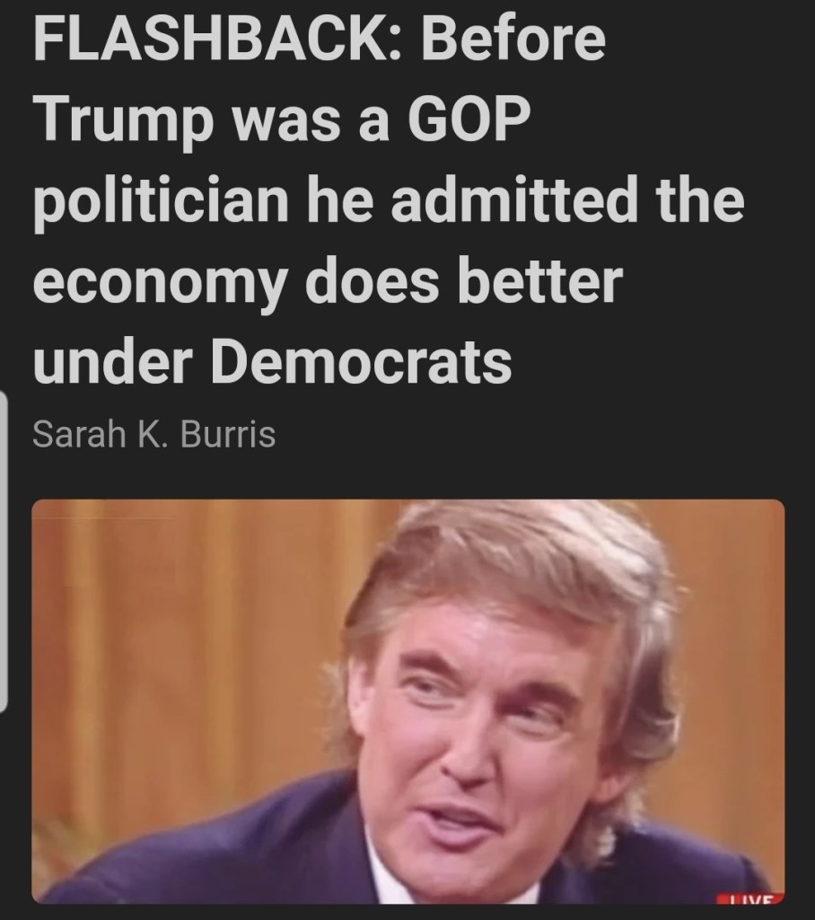 FLASHBACK: Before Trump was a GOP politician he admitted the economy does better under Democrats’ here: https://smartnews.link/a/sNa7 or you can directly access the content using this link here: https://smartnews.link/w/w9zD