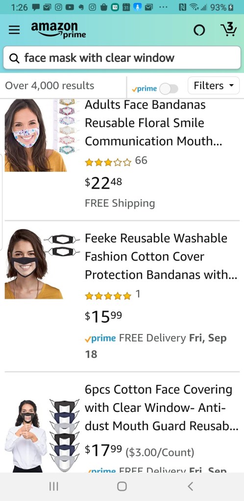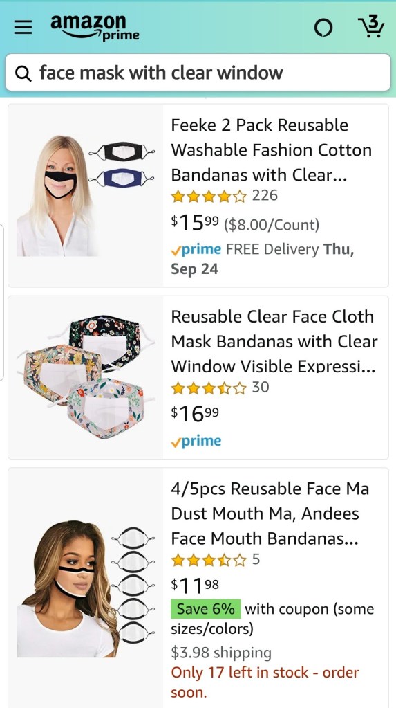 Ok, figured out I was safe, and looked ok. Then, one day I was listening to the radio and they were talking about clear mouth area masks. I was all over that. The were designed for the deaf, or lip readers initially.
