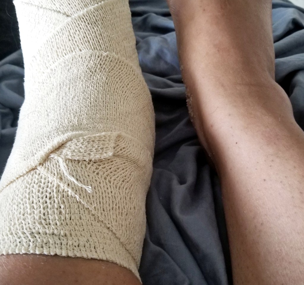 Last year in our old house I slipped on marble floors in an invisible pee spot. Slammed into a wall and my ankle landed super hard. Breaking the outer bone horizontally, clean break, breaking the large bone, by fracturing it straight up from my heel about 8 inches. Was in a boot and therapy 5 months. Even after we moved I made it a point to do exercises and not over tax it.