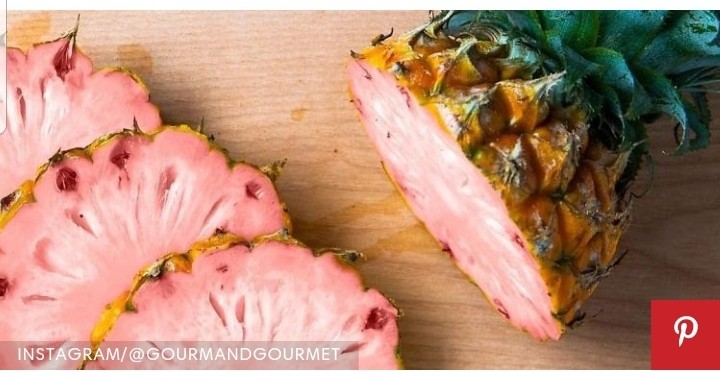 They are called Pinkglow Pineapples, from Del Monte. From Costa Rica. Insanely expensive at just under $50 each. The reason for cost is extremely small batches grown, over 24 months to harvest. Very specific growing regions. Available ONLINE ONLY.