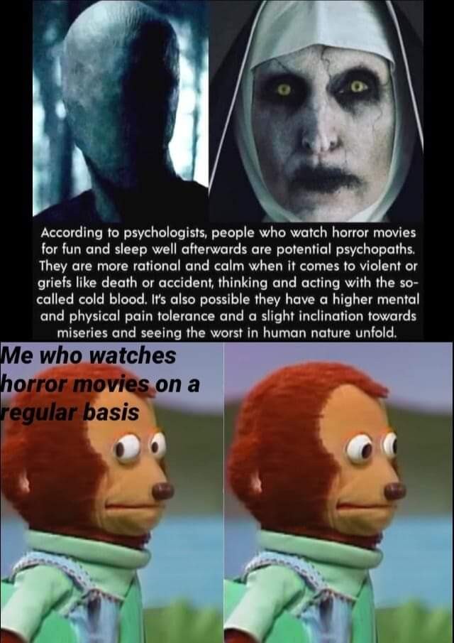 *** Meme Alert *** The Horror Movie Watcher & Their Psychology πŸ˜‚πŸ˜‚πŸ˜‚