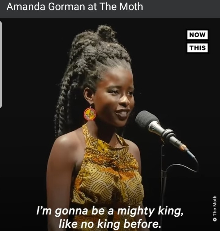 Amazing young woman. I’m old enough to have heard Maya Angelou speak and read, and have read her work, and seen her work. This young lady, will be remembered with such grace, many, many years to come. Amanda Gorman, we shall all know by name.