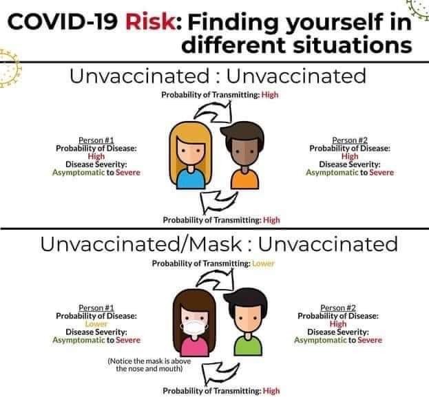 Some people are vaccinated. Some people are wearing masks. Some people are doing nothing.