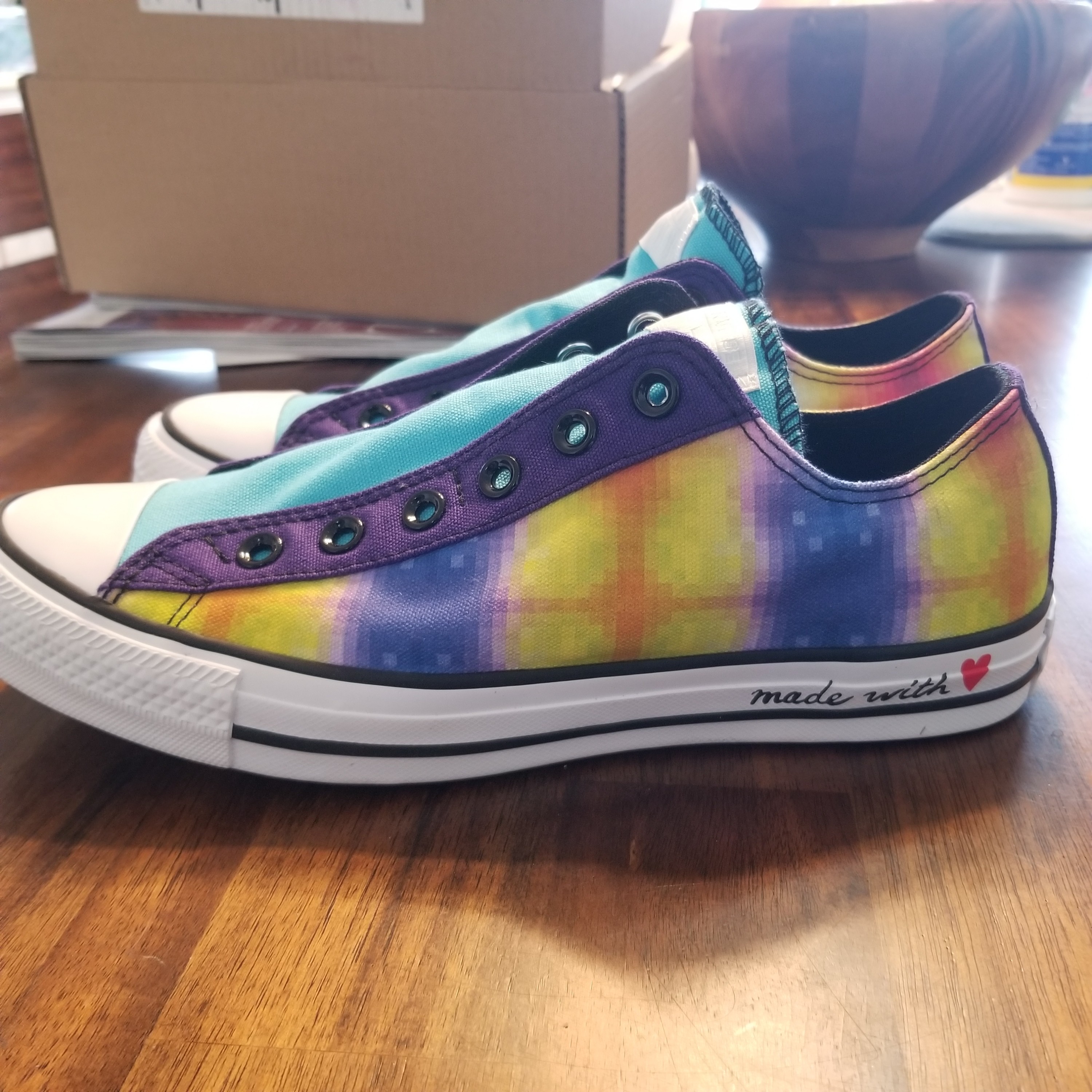 So, I ordered my first pair of custom (by me) Converse Tennis Shoes. Mine cost $75 took about 3 weeks to arrive. Love, love, love.