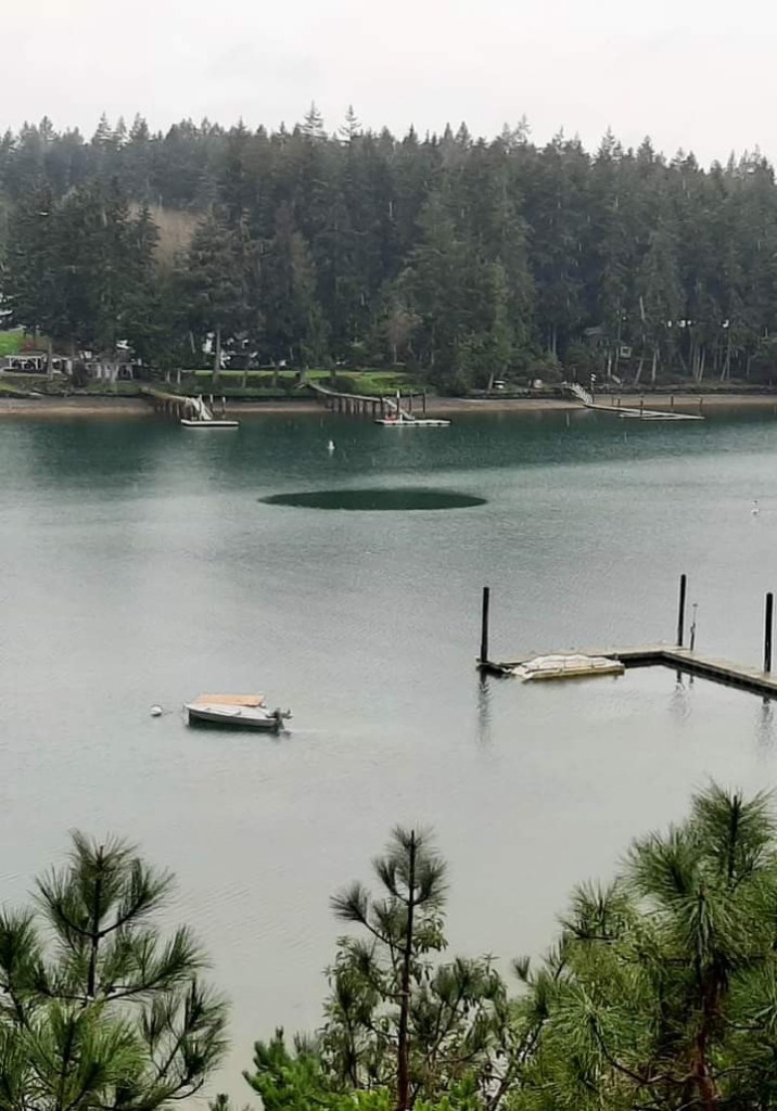So one of those perfect water hole circles has appeared off of our island, Bainbridge Island. Off of Manzanita Bay. They seem to be cropping up all over the world. Lake Berry. Portugal. Just randomly.