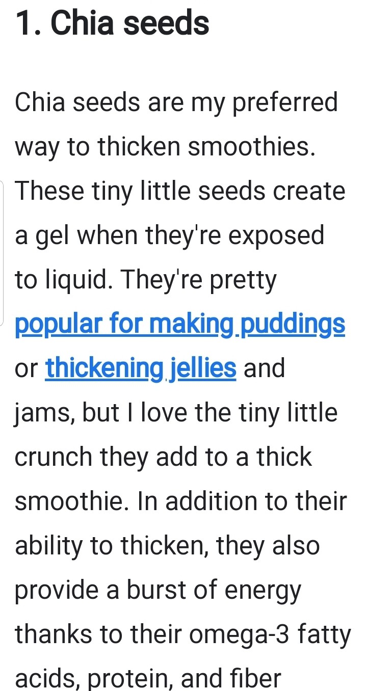 My THREE low calorie, or no calorie, high fiber, and good for your body, go to ingredients to THICKEN SMOOTHIES up are: