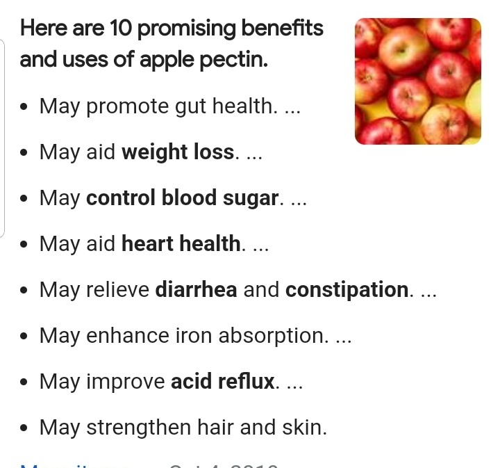 Pectin is AWESOME!!! Pectin may improve blood sugar and blood fat levels, kill cancer cells, promote a healthy weight, and improve digestion. Apple pectin is believed by some to improve digestive health and help prevent or treat gastrointestinal and metabolic disorders. It is inexpensive, readily available, has a great shelf life, and can be used in a variety of foods, and ailments. Flavorless. Makes foods smooth and jel like.