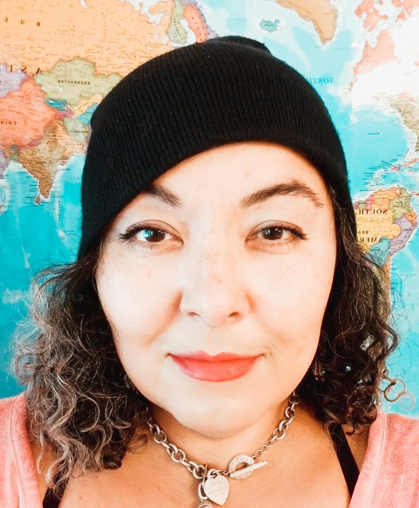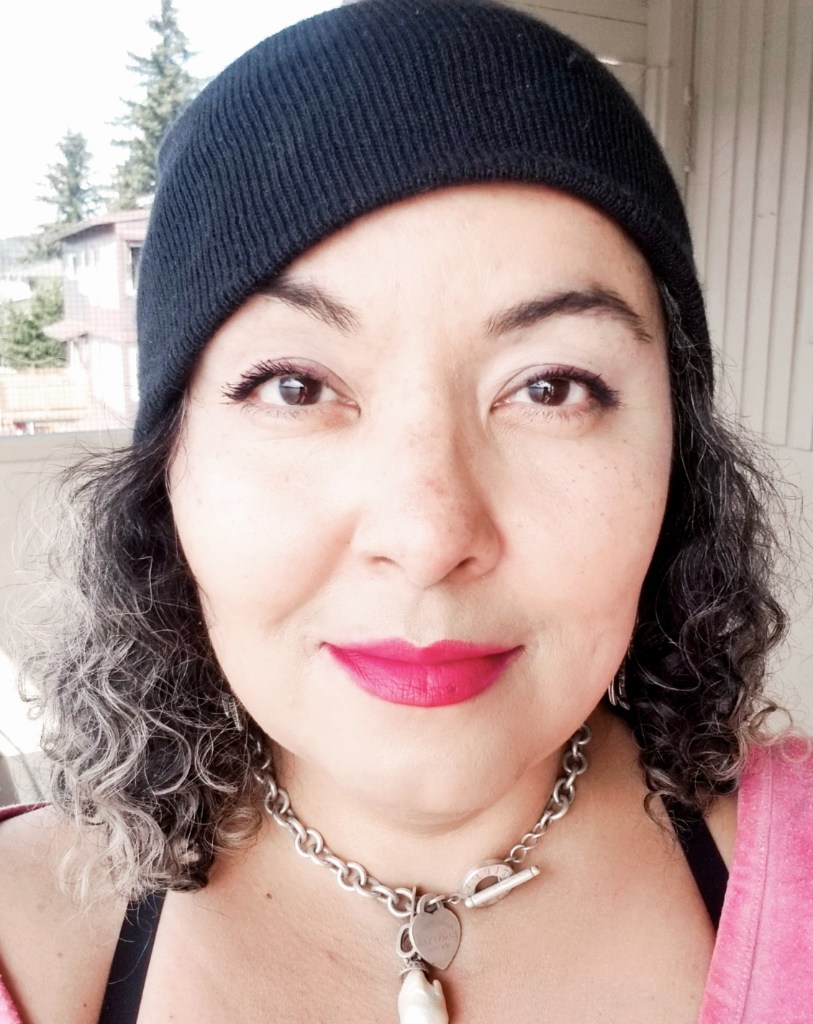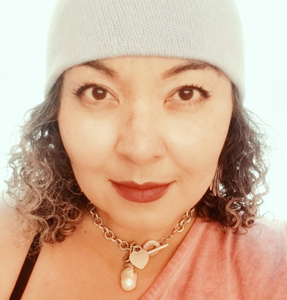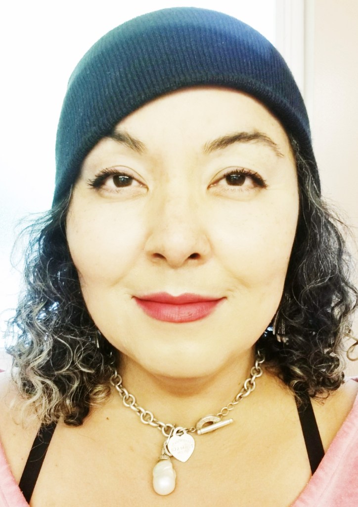So I get my hair colored for the first time in 1 1/2 years next FRIDAY!!!! AMEN!!!! Last year I cut over 6″ off. My hair looks short in this pic because of the hat and I just wet the ends, made it curl at the bottom. Growing it long again.