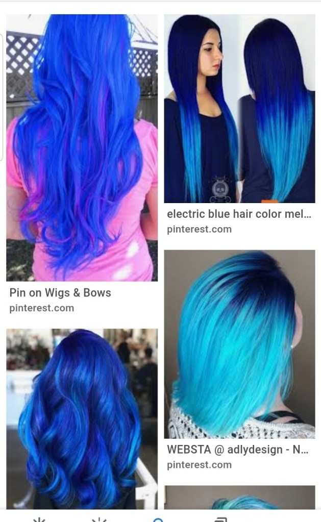 So, my hair isn’t consistently enough white to transition. Plus, I’m way too vibrant an energy to do that yet. So much so I’m getting my hair colored Electric Blue (that’s the goal), this Friday. After a year and a half of broken ankle and pandemic, FINALLY able to get it colored. Amen! Amen, Lord. It really throws me out of sorts not to be vibrant, inside and out. That includes my hair.