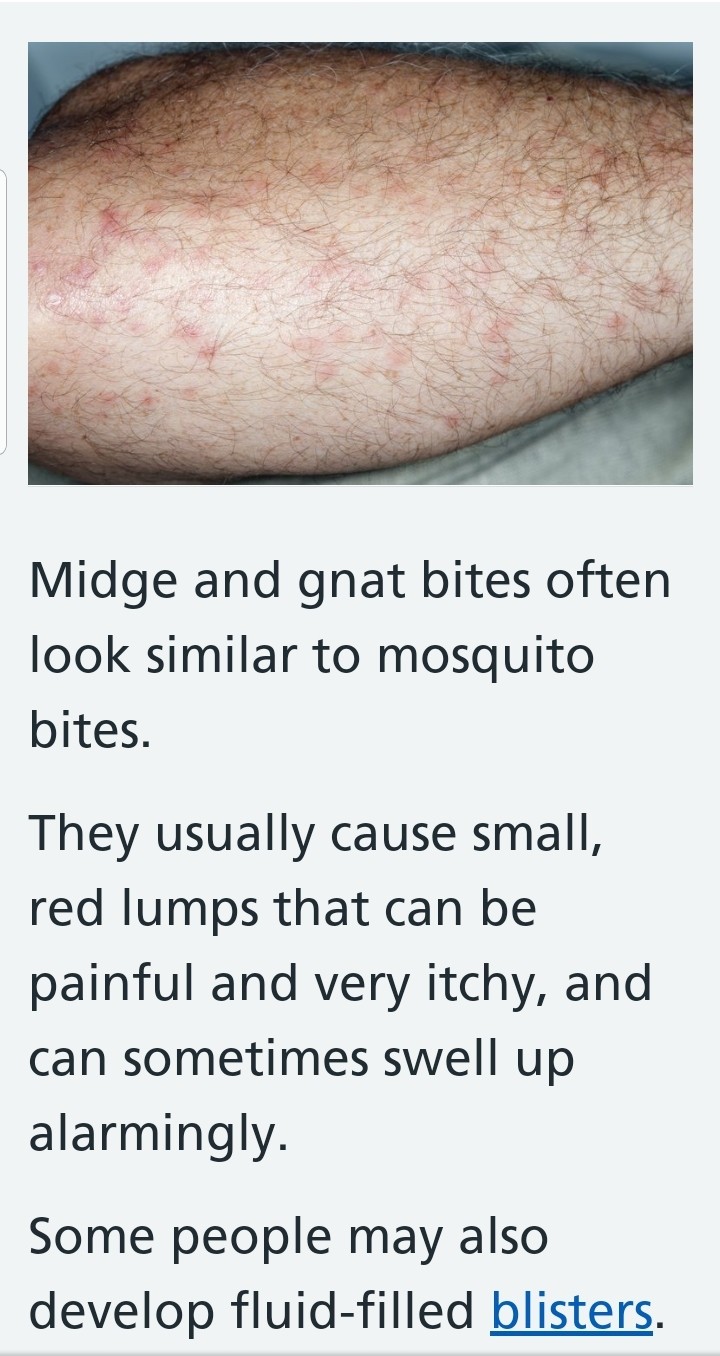 Well, about 2 days later, I was breathing again. Petrified, and paranoid of this bug, the GNAT!!! What was once welps, was now giant blisters, because I had so many bites in specific locations, they would merge and create giant blisters. It was INCREDIBLY PAINFUL!!! IT WAS ABSOLUTELY BONKERS!!!