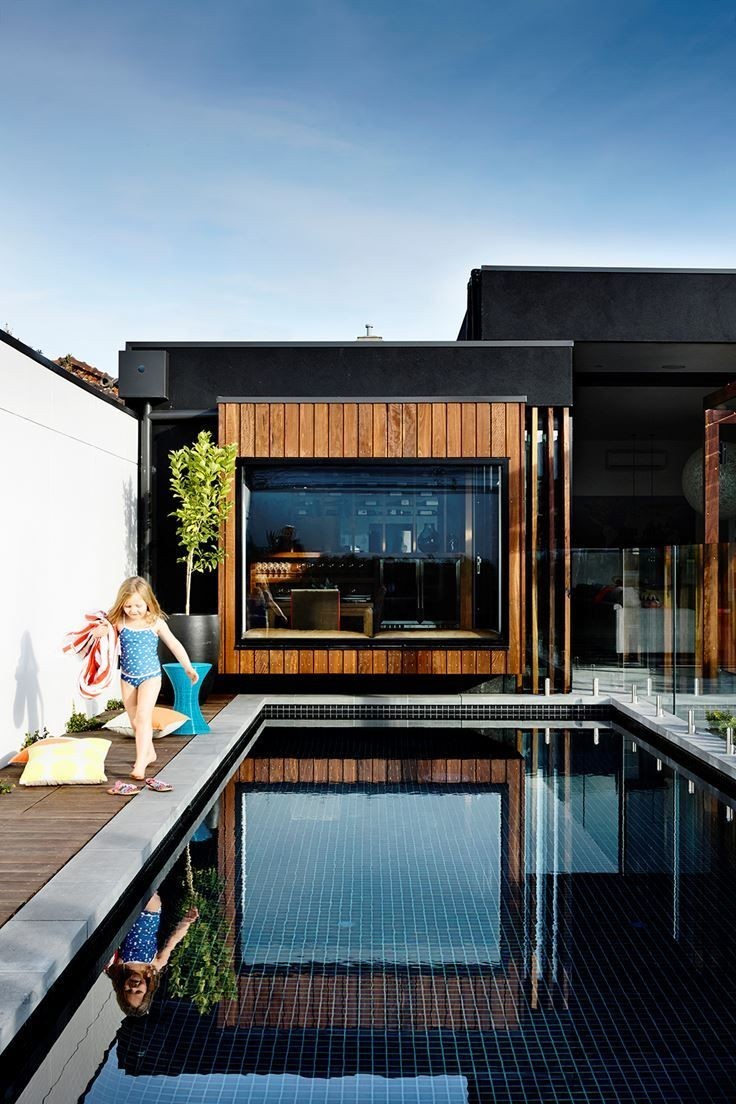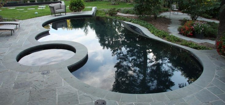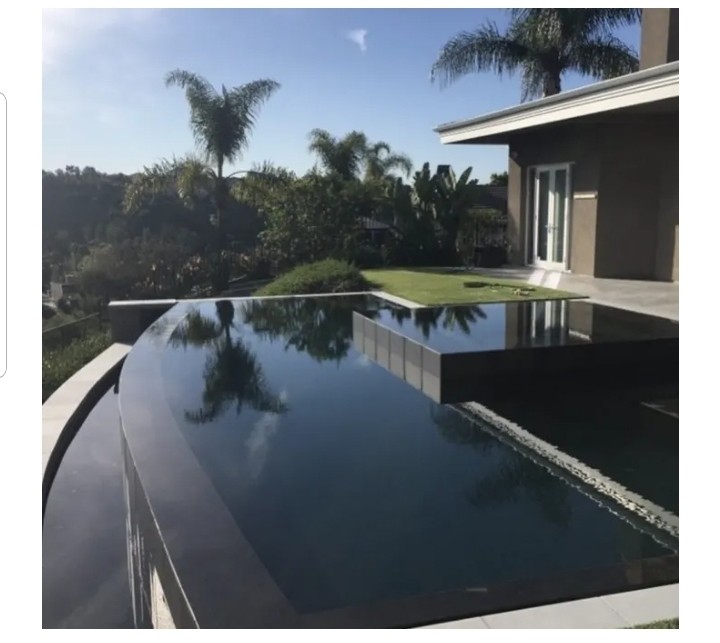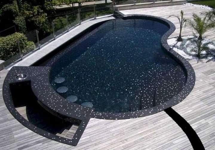 So, there is a new Modern Contemporary home trend happening for your backyard. Black Bottom Pools. Yep, you read that right. To give their pools, and yards, and homes, more edge, people are no longer having white, concrete, blue, or dark blue pools. They are instead opting for Black Hole, Blackest Black, colored pool bottoms. They look is intriguing, mystifying, edgy, and a little scary. Very intense to say the least. Very bold, and daring.