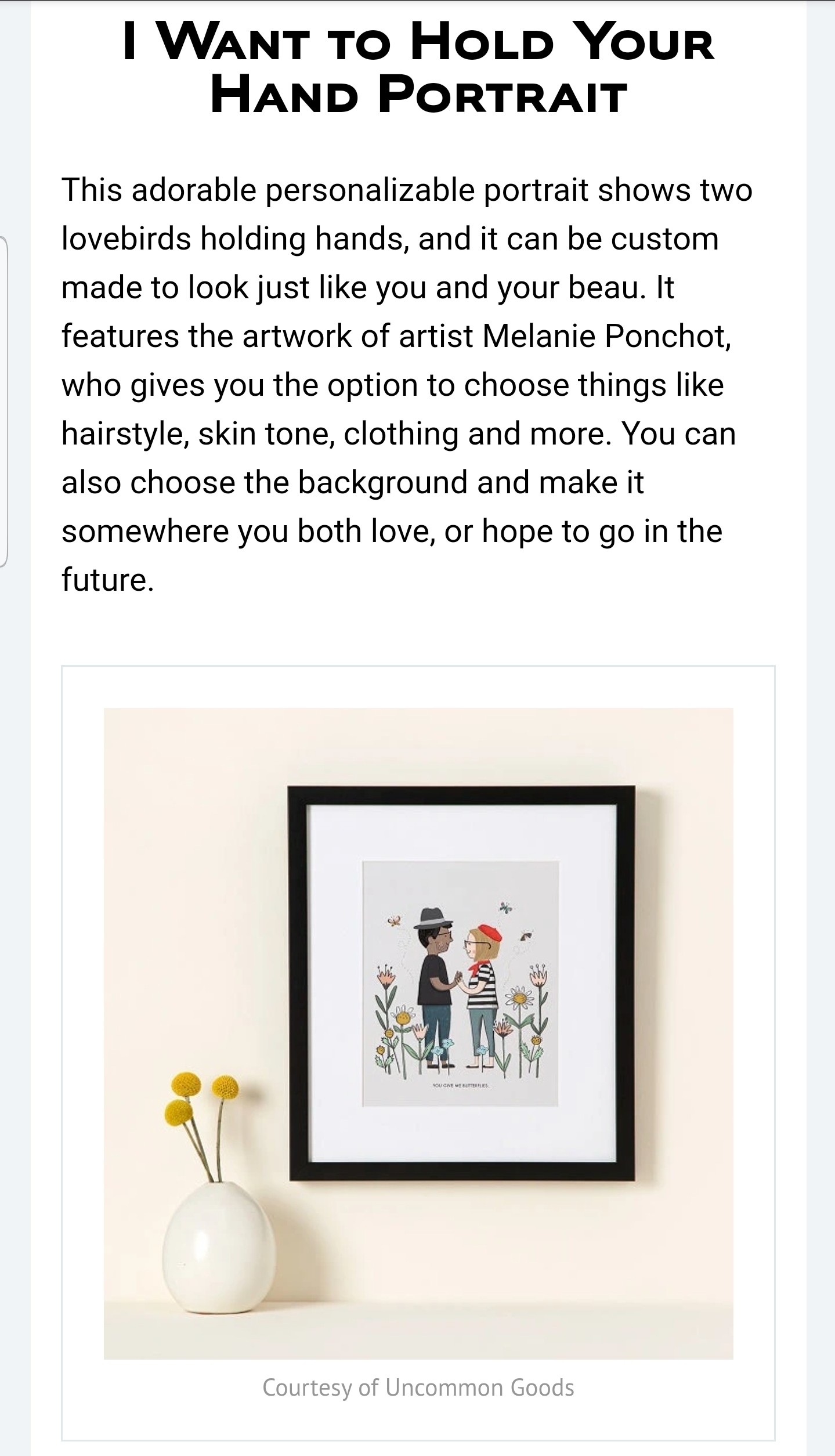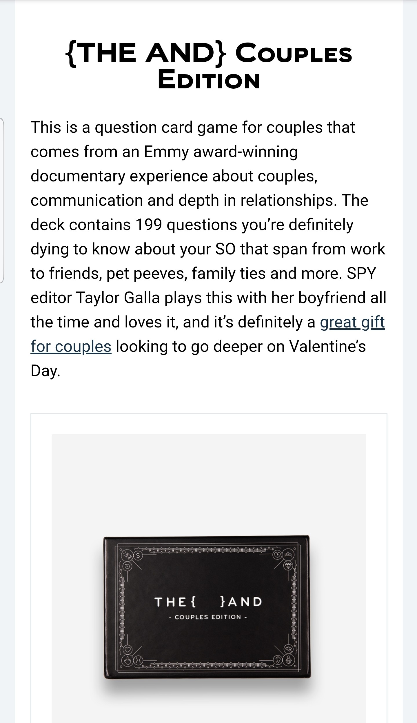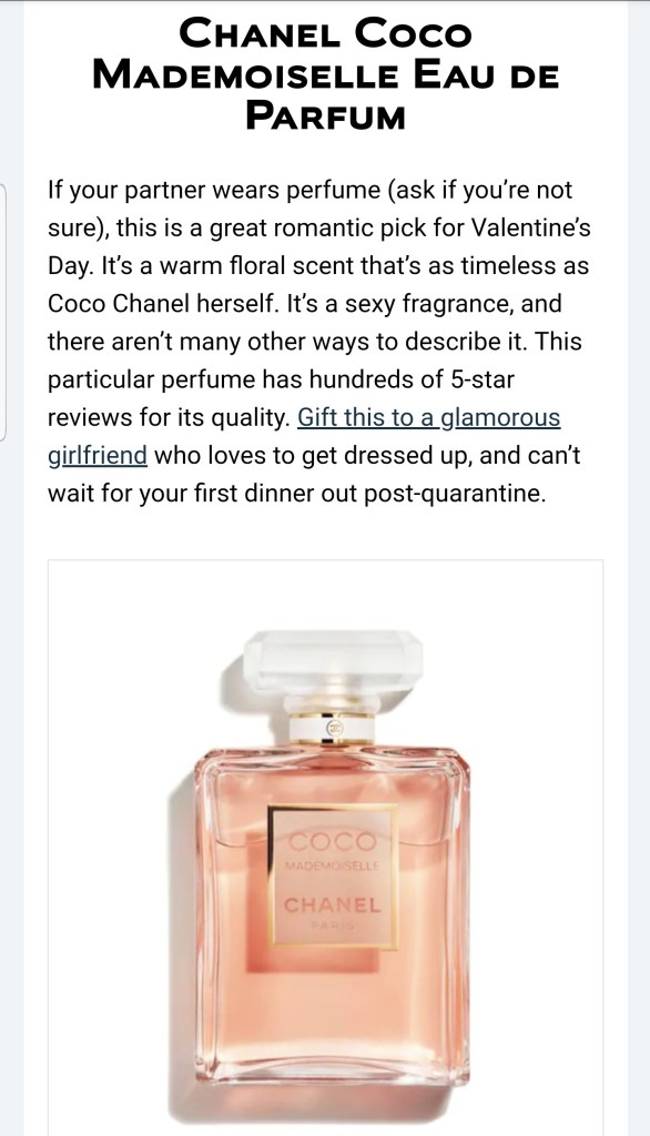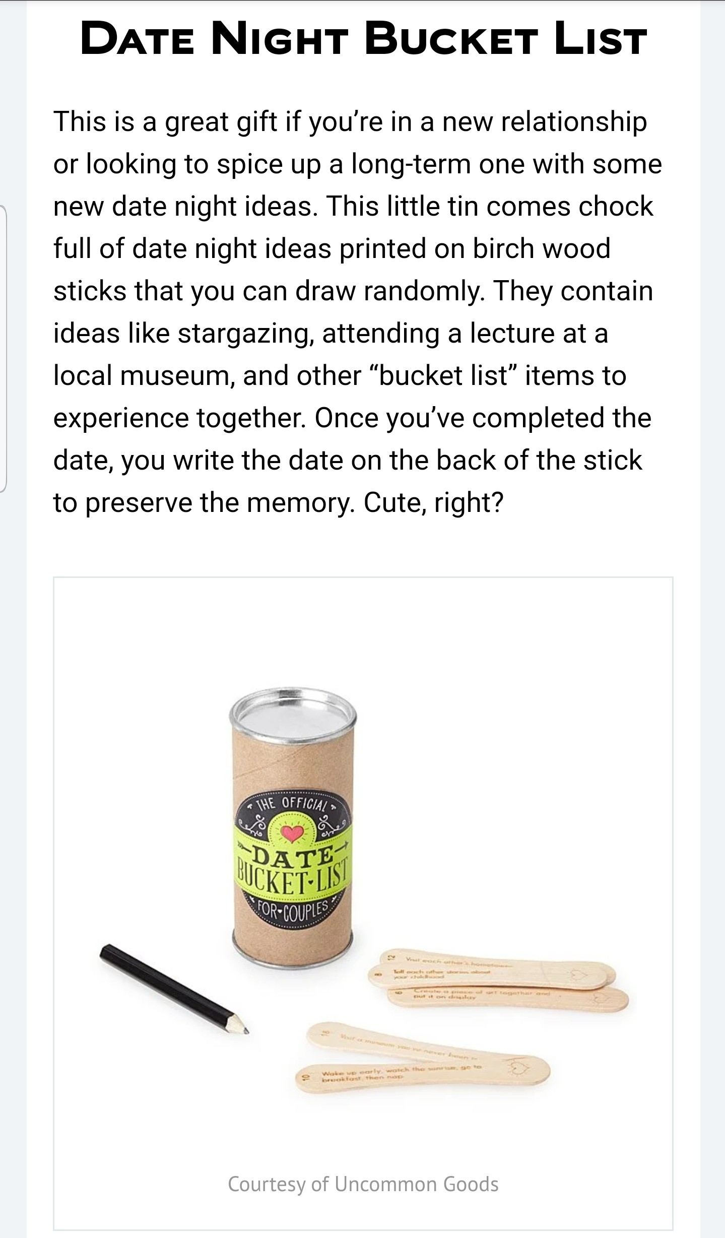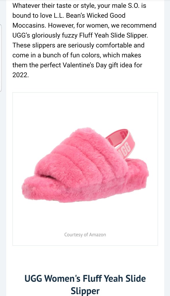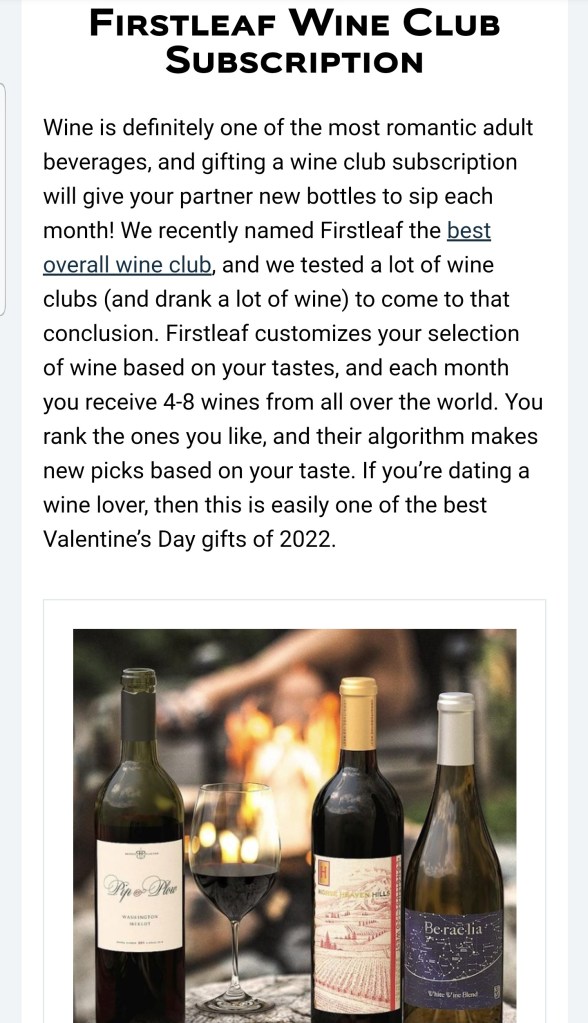 I came across this list – ‘The Best 2022 Valentine’s Day Or Any Day Gift List For Your Love, A Friend, An Acquaintance, Or Yourself’. ABSOLUTELY LOVE IT! However, when I went to share it to you all, with images, I lost the link. So, all of these items are available via shipping is my understanding.