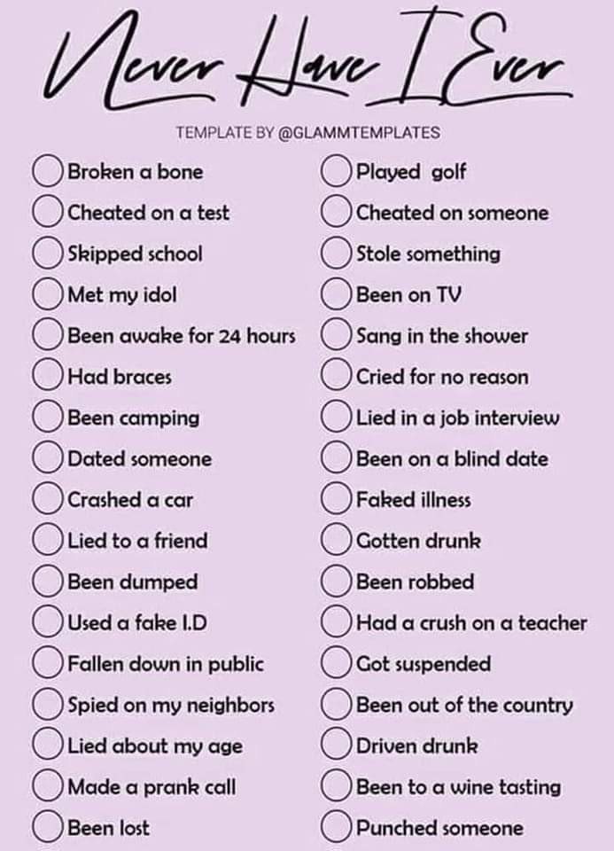 So, my big score is I have ‘never ever’ done 5 of these things! Lol!