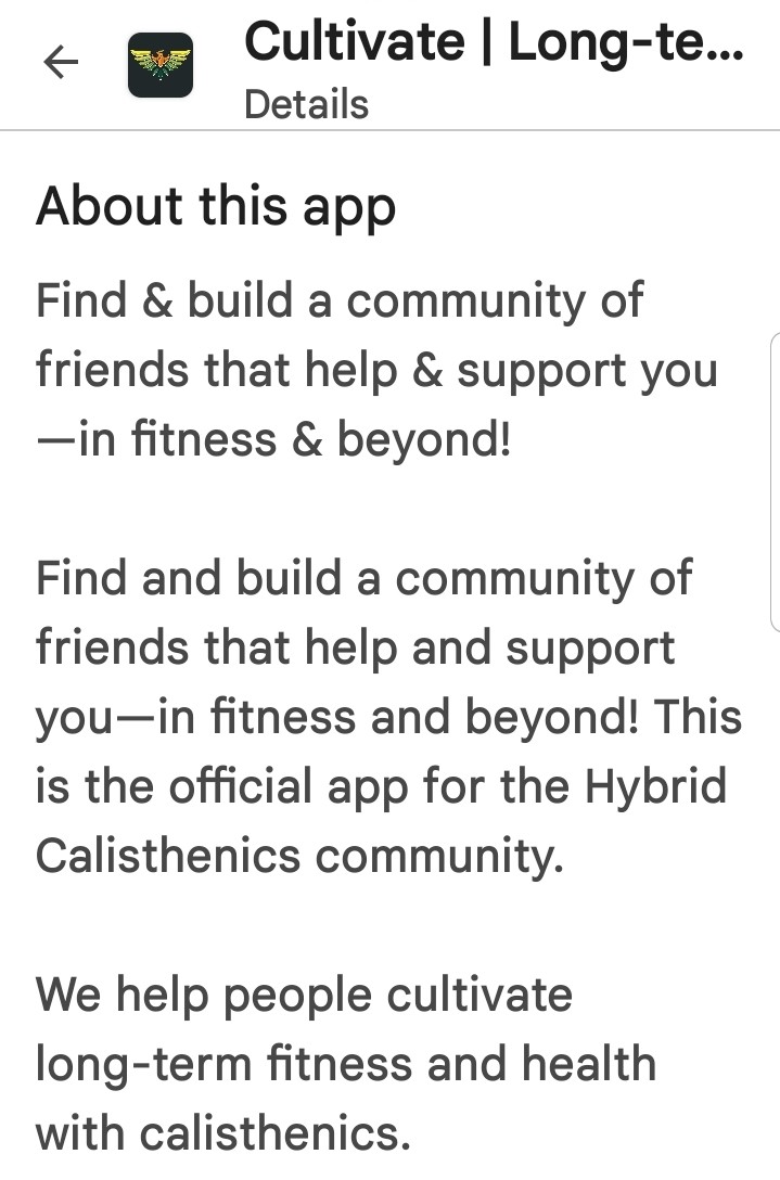 The following pictures are from the Google App Store for Hybrid Calisthenics Hampton.