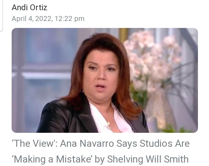I totally agree with Ana Navarro. If we are to judge Artists and people in general, by their personal actions vs contributions to society, we literally would be cancelling 3/4 or more artists, and 4/5ths of people in general out there. She states she does NOT agree, nor condone ‘the slap’.