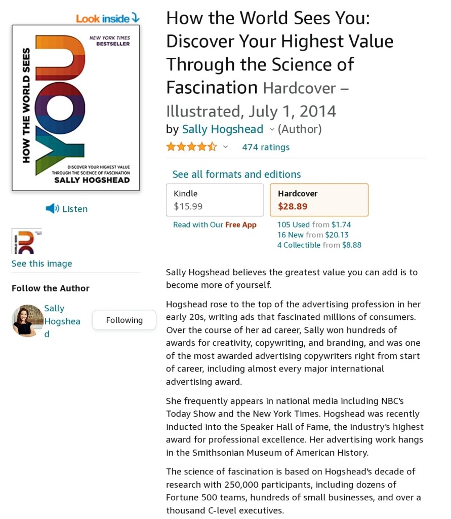 It was recommended we check out Author Sally Hogshead books: ‘How the World Sees Me’, and ‘Fascinate’ (to be noted there is also now and updated and revised version).