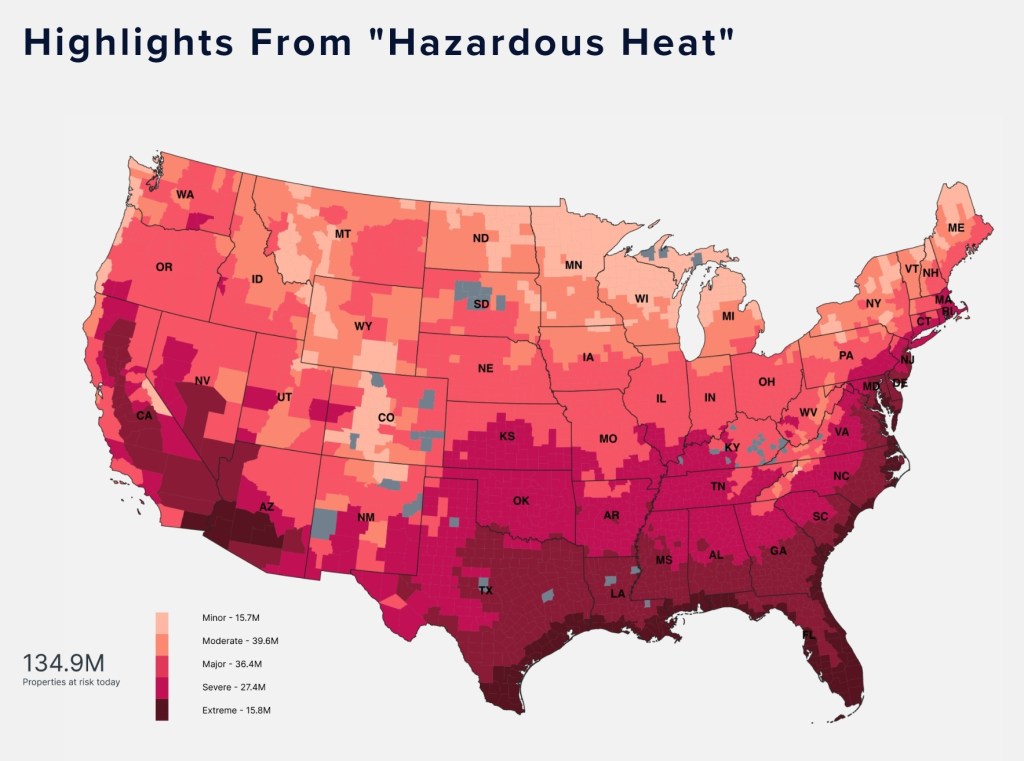 Thirty years later, those extreme temps will be experienced in more than one thousand counties, home to about 108 million Americans. First Street uses the 30-year model because that is the length of the most popular mortgage product in the U.S. Heat, flooding and fire risks are increasingly playing into home values, as climate change begins to factor into homebuying decisions.