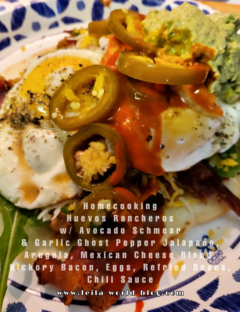 I actually make my own Pickled Jalapeno. My blend for this batch is whole Garlic Clove, Ghost Pepper, Habanero Pepper, Jalapeño, Sea Salt, Garlic Powder, Vinegar and Tumeric. I also made the delicious Avocado Schmear, which is almost like a combo of Garlic Avocado Guacamole, Garlic Aoli, Lime and lots of seasoning.