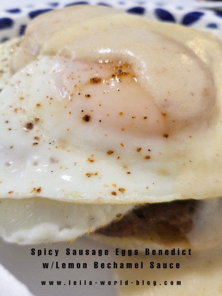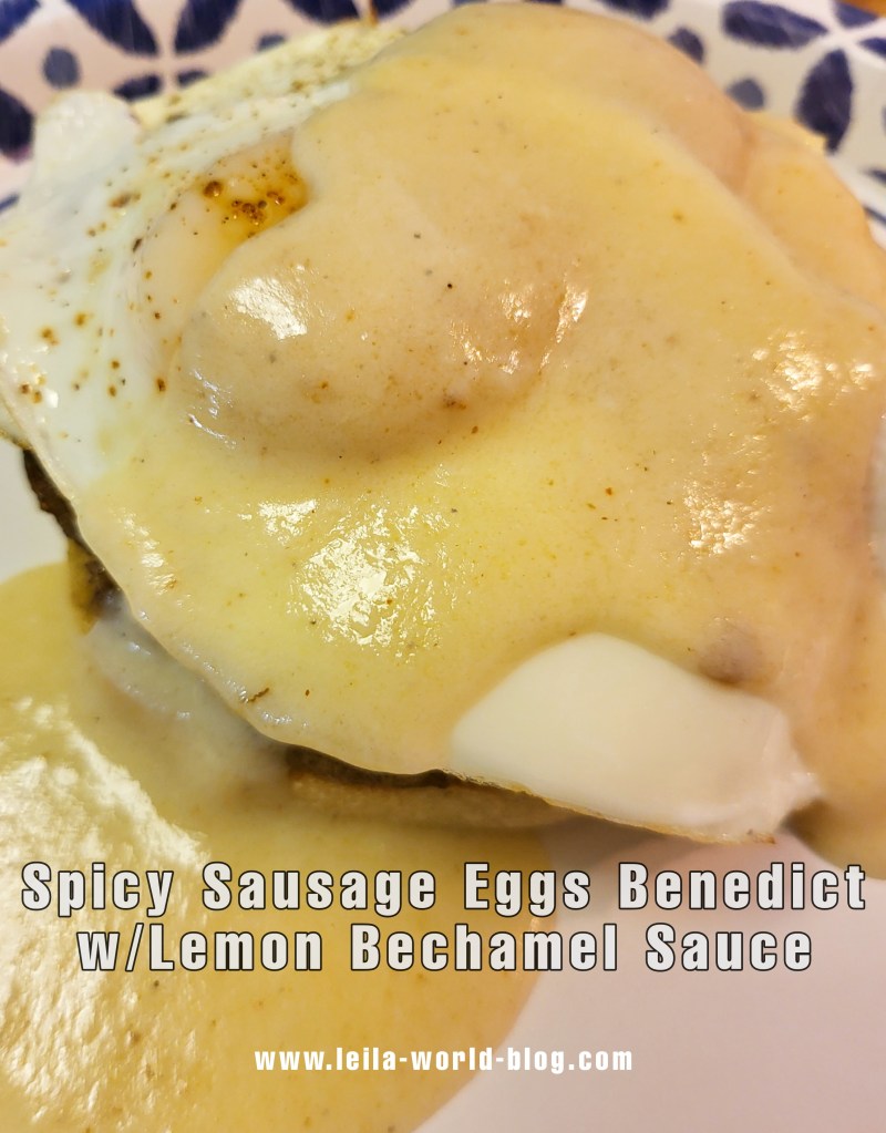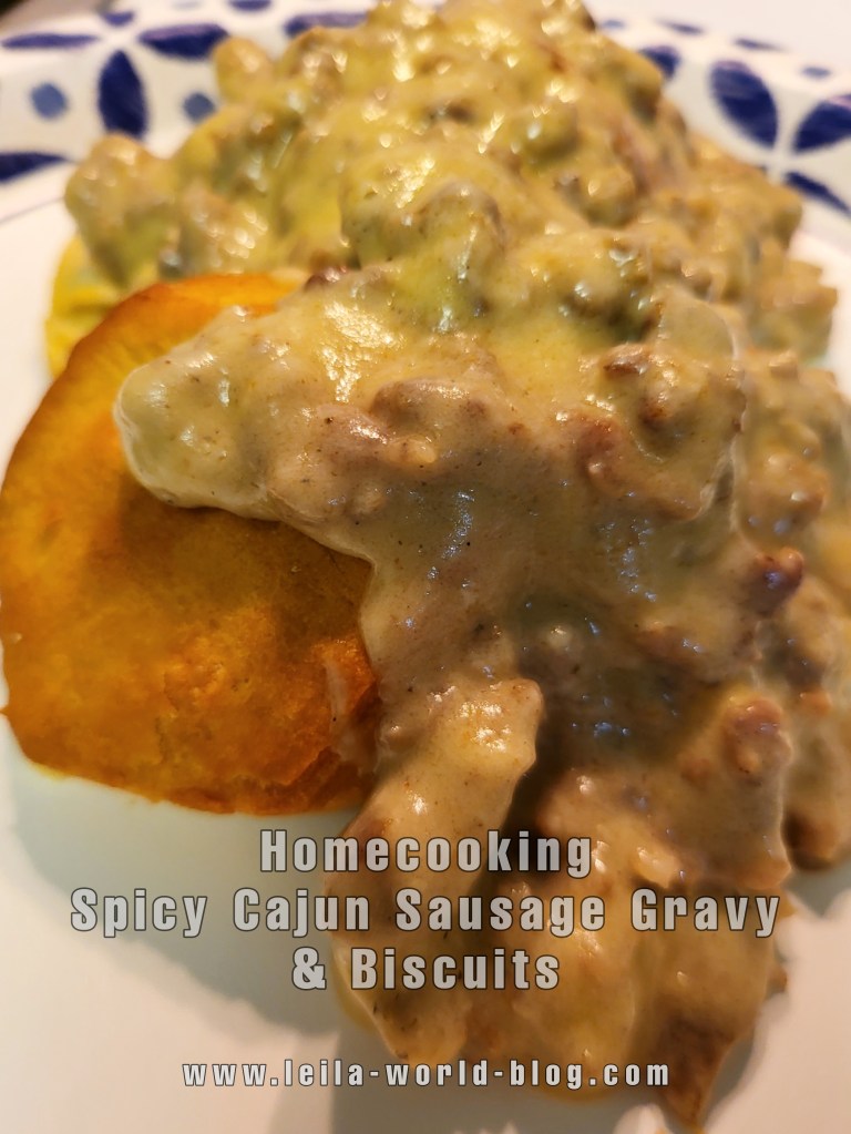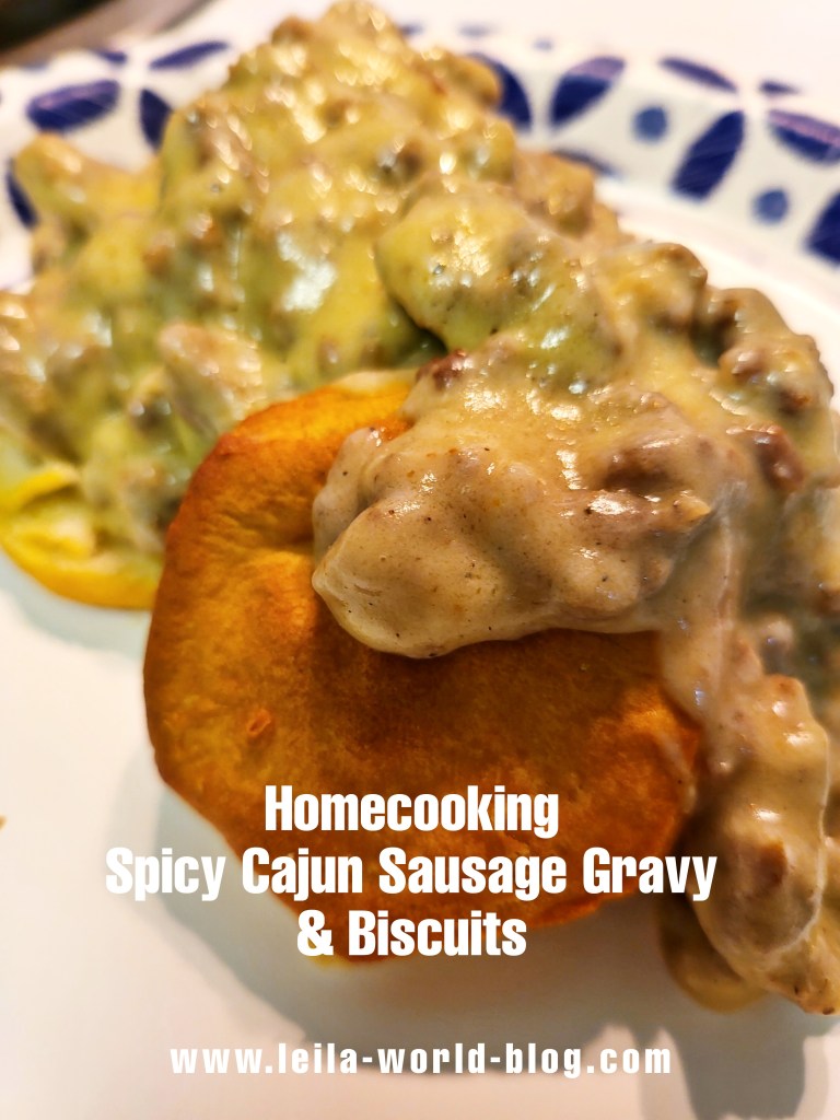 #homecooking, #leilaworldblog, #SausageEggsBenedictAndLemonBachamelSauce, #SpicyCajunSausageGravyAndBiscuits