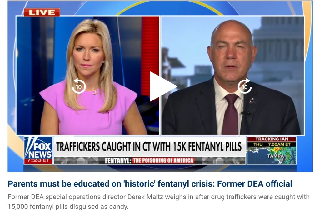 Derek Maltz, former DEA special operations director, warned parents to educate themselves on the nationwide fentanyl crisis after officials seized 15,000 pills disguised as candy in Connecticut.