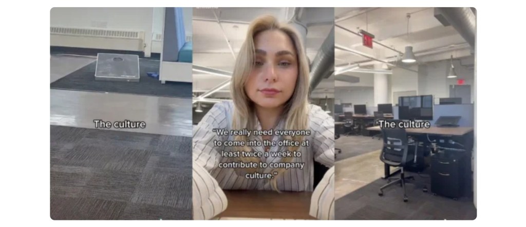 ‘I literally sat under my desk and cried’: Worker says employees are required to come into office twice a week for ‘company culture.’ She’s the only one there.
