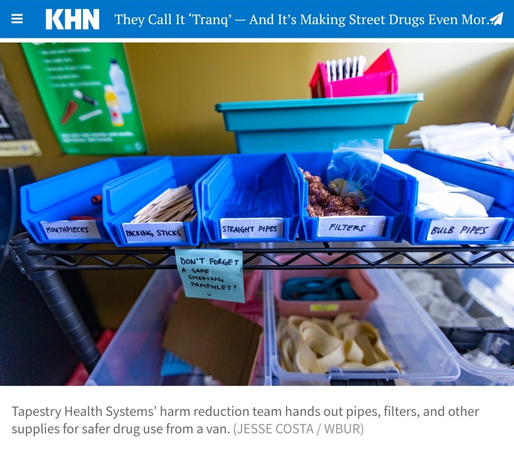 A street-outreach team from Tapestry Health Systems delivered what’s becoming a routine warning. Xylazine is an animal tranquilizer. It’s not approved for humans but is showing up in about half the drug samples that Tapestry Health tests in the rolling hills of western Massachusetts. It’s appearing mostly in the illegal fentanyl supply but also in cocaine.