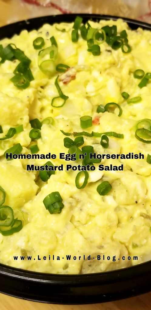 - Loaded Egg, Potato, n’ Horseradish Mustard w/Onions, Peppers, Coarse Sea Salt, Seasoning Potato Salad