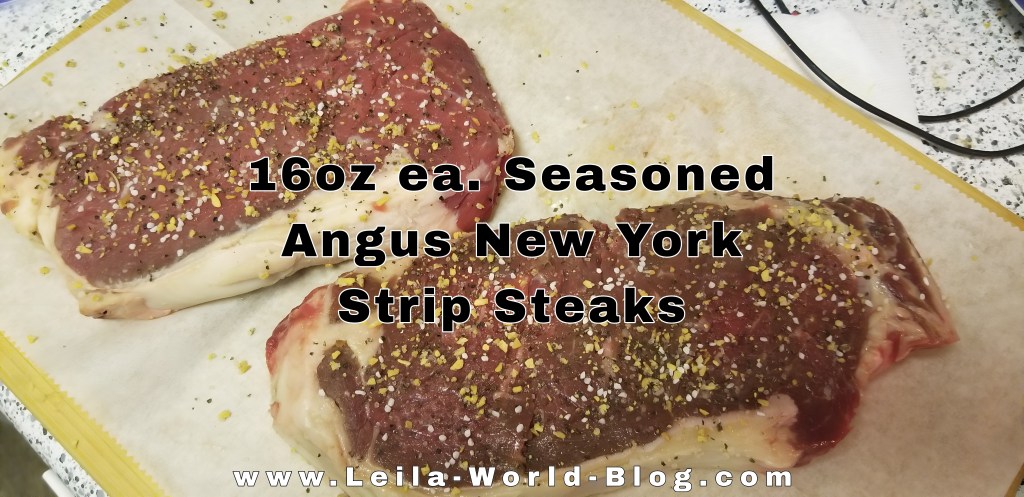 - 2 Angus Seasoned 1lb Seared Steaks (I actually had to cut each steak in half down to 8oz; leftovers eaten the next day)