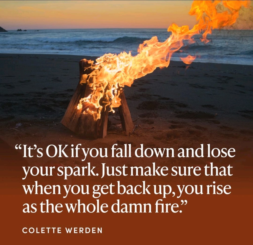 “It’s OK if you fall down and lose your spark,. Just make sure that when you get back up, your rise as the whole damn fire. ” – Colette Werden