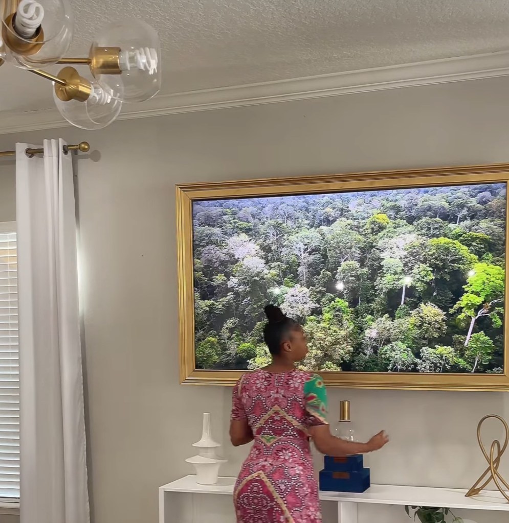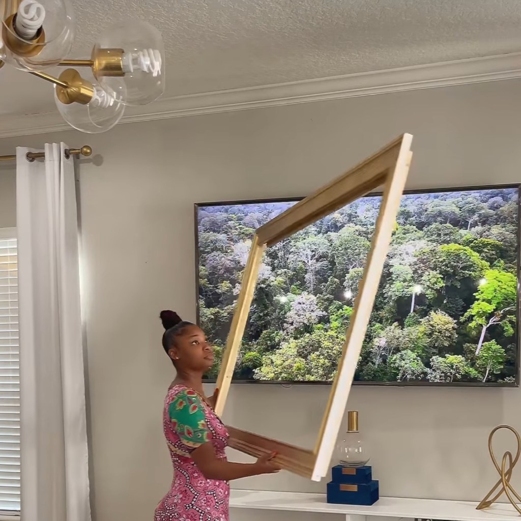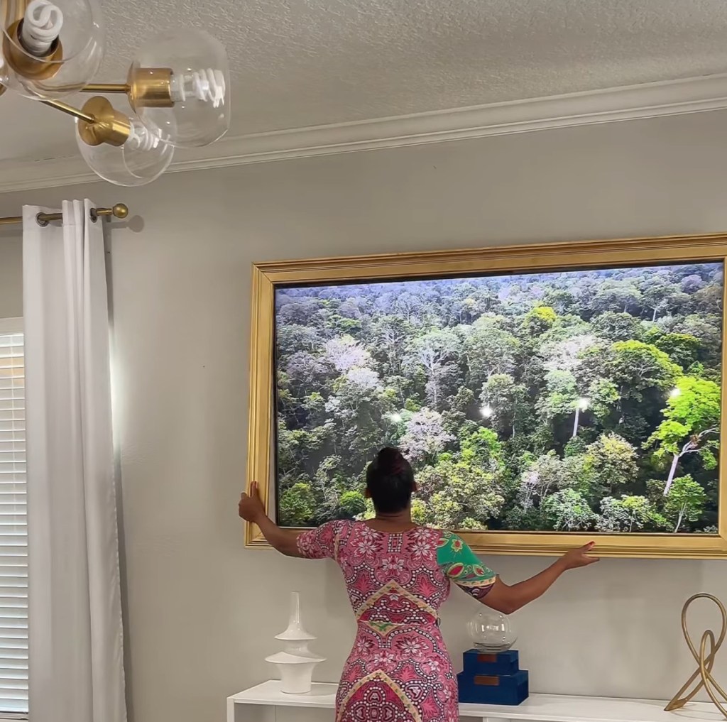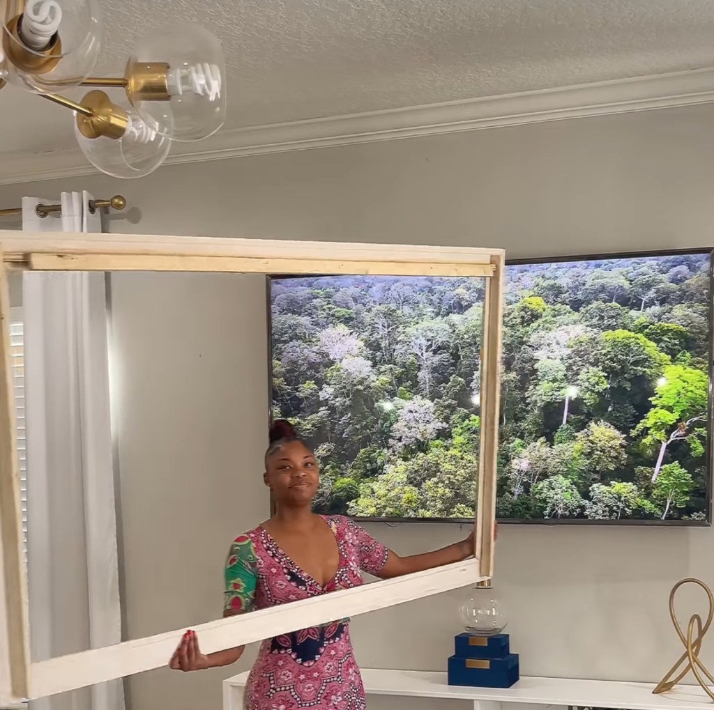 I really like this. You could do it with any color and style of frame. I think it creates a dimensional edge to the room. Kinda making the screen beyond 3D.