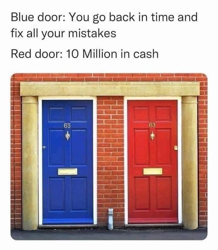 Which one would you choose? Red door? Or… Blue door?