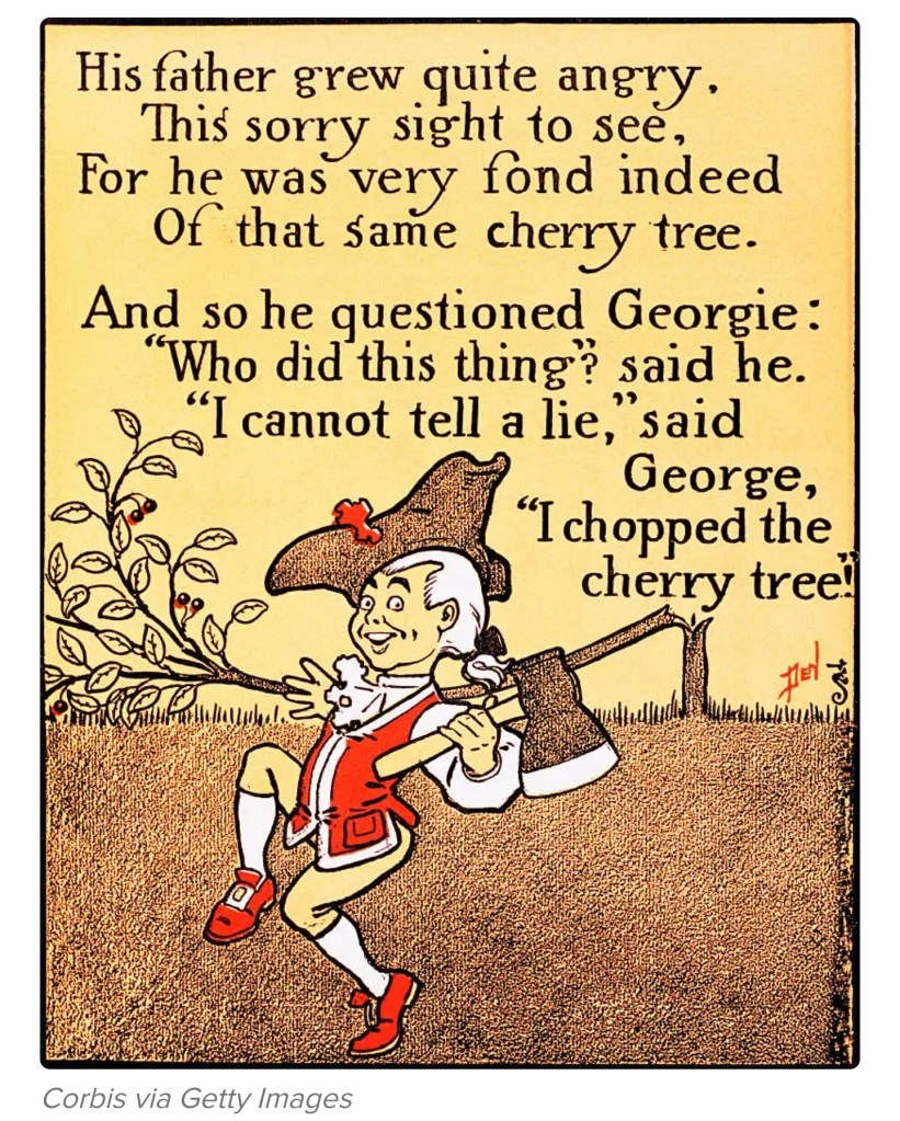 8. In fact, it’s just as much of a myth as the story of George Washington and the cherry tree. The story — about a 6-year-old Washington cutting down his father’s cherry tree, then admitting to it, proving the virtue of honesty — was invented by one of Washington’s biographers.