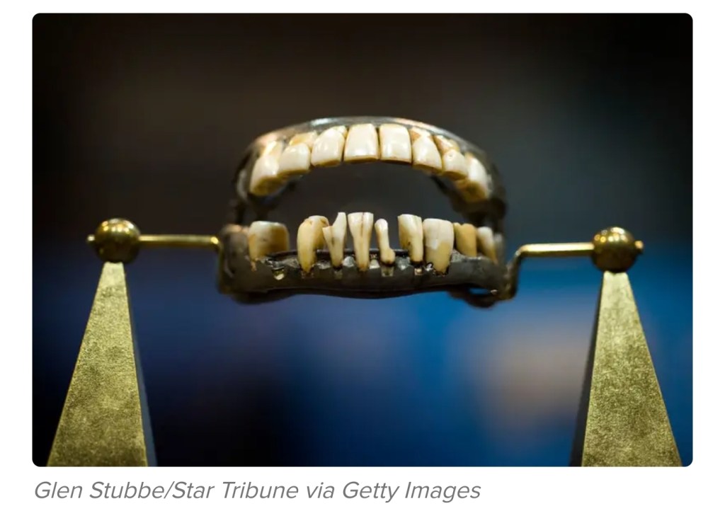 9. And speaking of George Washington…he didn’t have wooden teeth. He did have dentures made, but they were made of lead, brass, gold, and steel…and possibly the teeth of enslaved people.