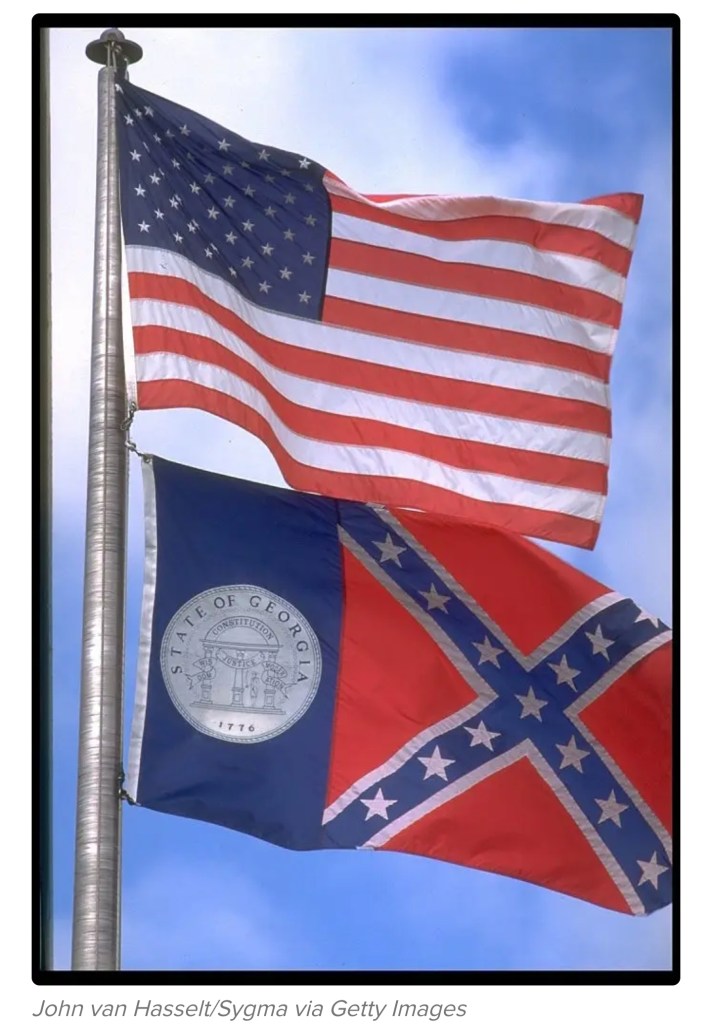 24. The Georgia state flag did not always feature a Confederate flag. It was actively added as a response to the Civil Rights Movement in 1956, and lasted until 2001.