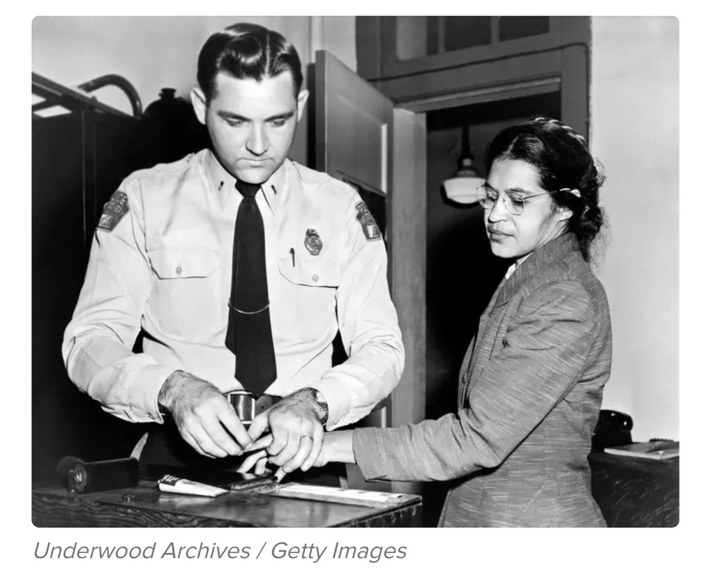 26. Rosa Parks was not just an older woman who didn’t want to leave her seat. She was not tired nor old — she was 42. She was also a longtime NAACP member and activist, and had worked to raise funds for a previous woman who had been arrested for not giving up her seat on a bus, 15-year-old Claudette Colvin. Although Parks knew the NAACP needed a lead plaintiff in their case to end the Jim Crow law, the act of protest was not planned.