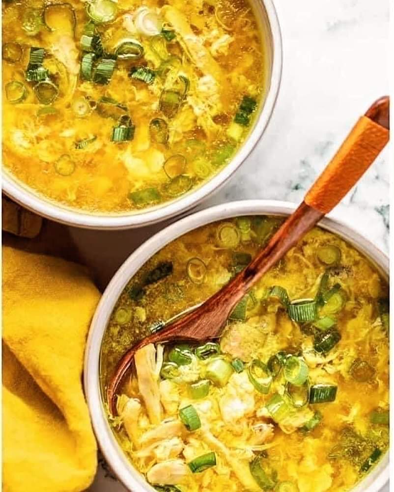 In a small saucepan, combine the chicken broth, soy sauce and sesame oil. Bring to a boil. Stir gently while you pour in the beaten egg. Cook for about 1 minute. Season with chives before serving.