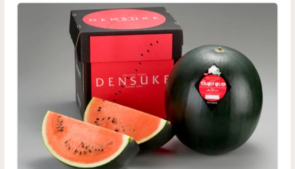 - Densuke: A variety of watermelon with a black rind that has no stripes or spots. It is grown only on the island of Hokkaido, Japan.