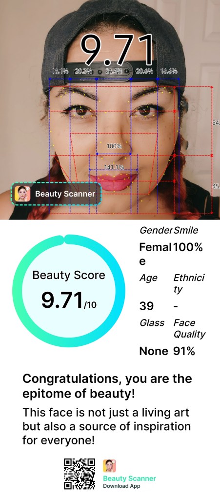 Yesterday I was pretty tired. I decided to take the test again. Depending on the day, my face looks more aged than other days, lol. Now mind you that I am wearing a baseball hat, and working off of 2 hours sleep, with minimal makeup on.