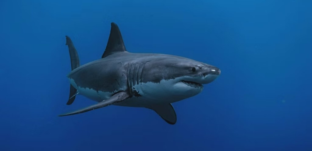 Adult great whites are more commonly found in deeper waters, often migrating to the Channel Islands and likely avoiding competition with others for prey like bluefin tuna.